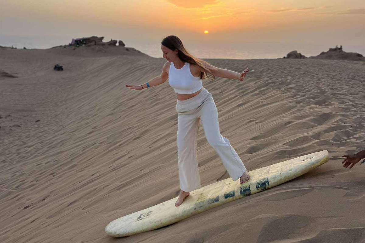 Enjoy an exciting sandboarding adventure on the golden dunes of Timlaline, where soft sand and wide open views create the perfect setting for fun and relaxation. Glide down the slopes, feel the warm desert breeze, and take in the peaceful coastal landscape for a simple yet unforgettable experience in nature.